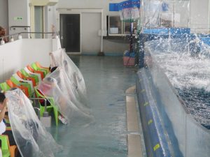 みんな上手に生け簀へエサをあげられました!