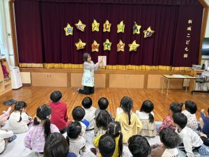 まずは絵本『ひなまつりセブン』をみんなで見ました📖