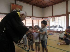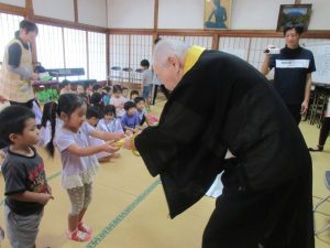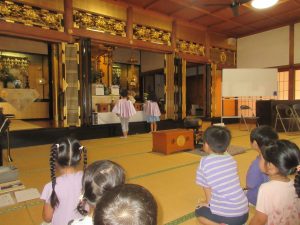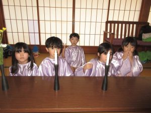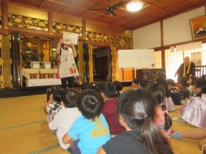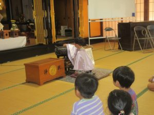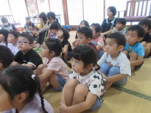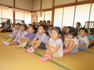 理事長先生の彼岸の話もしっかり聞き、紙芝居『つきのうさぎ』もよく見ていました👀
