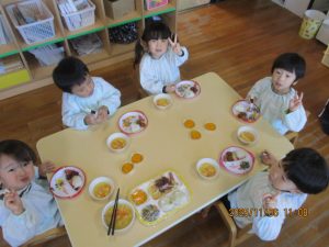 身体も温まり、お腹も空いてきたとこで給食🍴