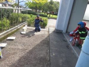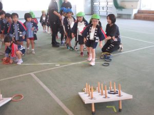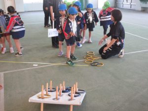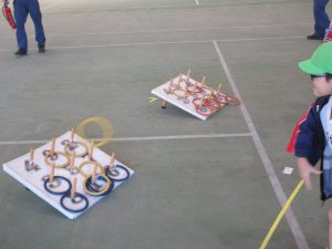 みんなで力を合わせて、輪投げ。バッチリ全部に入りましたよ✌