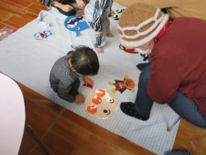 その後は、正月遊び(おてだま・コマ遊び・福笑い・かるた遊び・ダルマ落とし)でそれぞれのコーナーに分かれて楽しみました😊